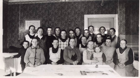 Rad 2: Oskar Rabb, Ellen Rabb, Alma Frantz, Maria Södergård, Ida Norrgård, Maria Hinders, Irene Norrgran, Maria Örn f. Wik, Ida Nyman f. Hinders, Ida Örn (Jåfs), Ellen Berg, Edla Örnberg, Betty Storbacka f. Backman, Anna-Lisa Östman f. Örn, Signe Lundberg, och Greta Åström f. Östman.