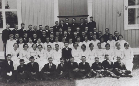Konfirmander vid Kvevlax kyrka, Rudolf Udd, Sanfrid Strandberg, Georg Åberg, Sigurd Nyqvist, Etel Örn, Irene Forsén, Etel Sandén och Anni Rådman. m.fl. Skriftskola