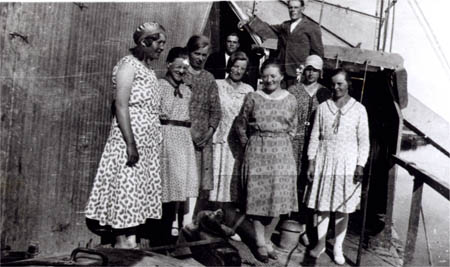 Besökare på mudderverket: Sylvia Beijar, Ida Beijar, Elna Wik, Erik Öman?, Agda Norrgran, Signe Beijar, Hugo Vasberg, Ingrid Udd? och Ingrid Östman.