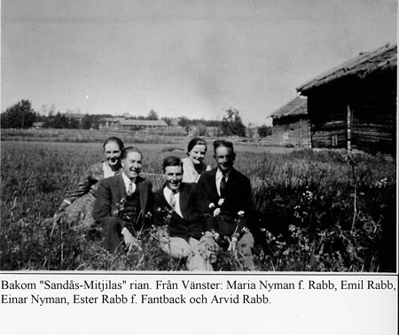 Bakom ”Sandos-Mittjilas rian” Maria Nyman f. Rabb, Emil Rabb, Einar Nyman, Ester Rabb f. Fantback och Arvid Rabb