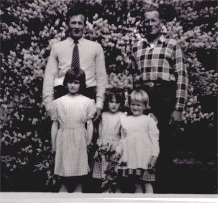Fr. v. Albin Grop f. 1915 och brodern Johannes Grop, barnen fr. v. Saga Grop g. Karp, Birgit Grop (Albins döttrar) , Anita Grop g. Krooks (Johannes dotter).