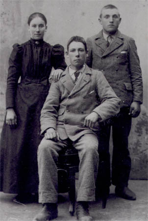 Stående: Anna Maria Sandén f. Helsing 1876–1952 och Mickel Rabb-Sandén 1881-1961 och sittande, Johan Erik Helsing (Anna Marias bror)