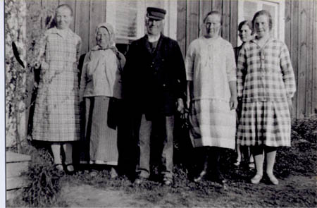 På besök i Västerhankmo 1927, Nytomt-Erk: m.fl. Fr. v. Katarina Wik, Anna-Brita Asp f. Näsman (syster till Erik Wiks hustru Lisa), Erik Wik, Edit Frantz f. Krus, Johanna Wicks f. Haga och Signe Krus.