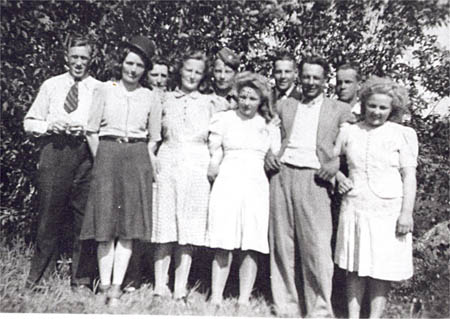 Från vänster: 1. Levi Örn 2. Aina Grop g. Wahlström 3. Adolf Wasberg 4. Elin Willför g. Lundgren 5. Lars Haldin 6. Alice Wik g. Haldin 7. Axel Grop 8. Alfred Grop 9. Joel Friberg 10. Oline Wik g. Örn.