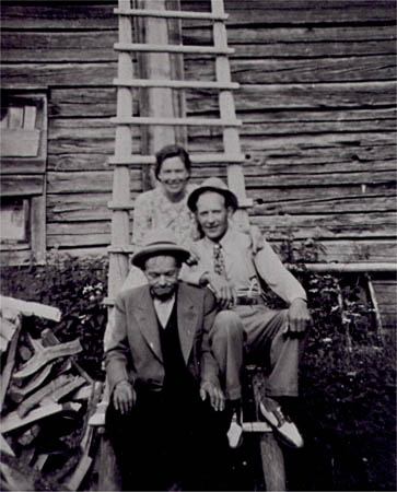 Johannes Nyfors (Krigar) 80-årskalas: På stegen Fanny Mälsor och maken Harald Åman och nere Johannes Nyfors