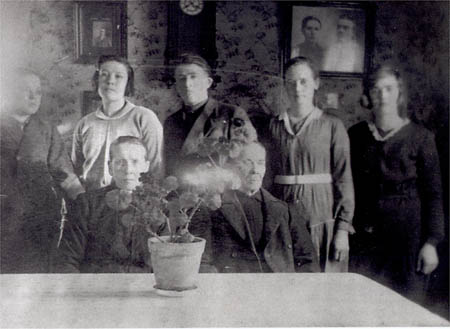 Johanna Grop och Karl Gustav Grop (1869-1951) med barnen Alfred Grop, Signe Grop, Albin Grop, Frida Grop och Aina Grop. (Gård i Rönnviken. Se VBH III s. 125.)