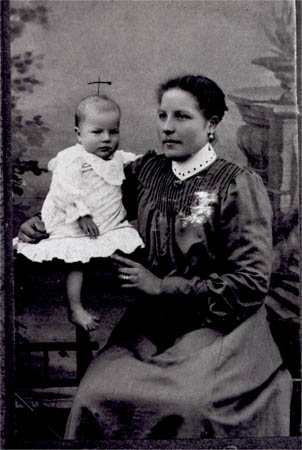 Ida Häggström g. Östman (Bjynis) g. 2 Smeds (Tallback-Ida) med dottern Ellen g. Lindström.