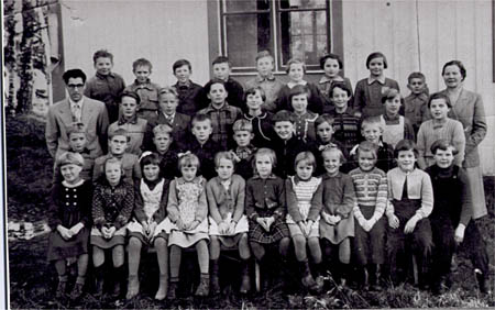 Vassor folkskola läsåret 1954–55. Nedersta raden från vänster: Doris Strandberg g. Avramovic, Sonja Wallén, Inger Vasberg g. Smeds, Anita Enroth g. Rabb, Birgit Udd g. Andersson, Eivor Åberg g. Svarvar, Synnöve Beijar, Daisy Blomkvist, Christina Åberg g. Rådman, Barbro Hinders g. Eriksson, Birgit Dahlberg g. Nyvall. Andra raden från vänster: Lars Örn, Dan Skog, Tage Östman, Harry Nykvist, Kaj Öman, Krister Frantz, Bertil Rabb, Håkan Lundberg. Tredje raden från vänster: Lärare Bror Siegfrids, Paul Vasberg, Vilbert Rabb, Åke Frantz, Gun-Maj Strandberg g. Alm, Ing-Maj Heir g. Melin, Gretel Östman, Birgit Strandberg g. Thorell, Kerstin Udd. Fjärde raden från vänster: Roger Rabb, Rainer Rabb, Bernhard Wallén, Jarl Storbacka, Roger Wallén, Gunvi Rabb g. Småros, Vivan Åberg g. Wik, Carita Frantz g. Rabb, Ole Åberg, lärare Ellen Berg.