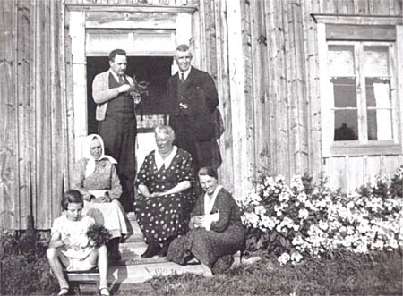På Löt-Mosters farstutrappa (Jan Heir ägde stugan 2020), okänd, Maria Ståhl f. i Palvis och moster åt Maria Sandén g. med Mickel Sandén, Viktor Ståhl handlande i Jakobstad, Hjördis Ståhl g. med Viktor, ?, ?