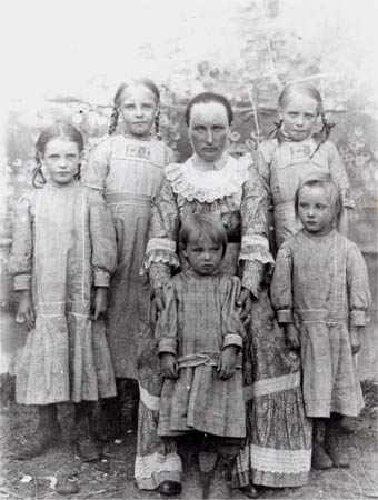 Ida Örn från Kuni (gift med Erik Aura i Miekka) och systrar och mor Brita Stina Örn. Fr. v. Edit, Ida, ?, Brita Stina Mickelsd. Rabb f. 1878 gift med Edvard Örn. Köpte hemman i Miekka och flyttade till Klomppin. Se foto 701,01