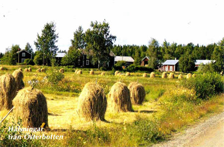 Vykort från Norrstubacken på 1960-talet. Gårdarna t. v. Jakob Östman ”Löövis Jakop” och t. h. Otto Östman ”Nåssto Åtto”