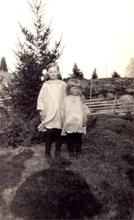Systrar Edna Maria Frantz f. 1918 och Elvi Frantz f. 1921. Föräldrar skomakaren Alfred Frantz och Aina f. Öst. Fotade ovanför Nässlins på Getstranden.