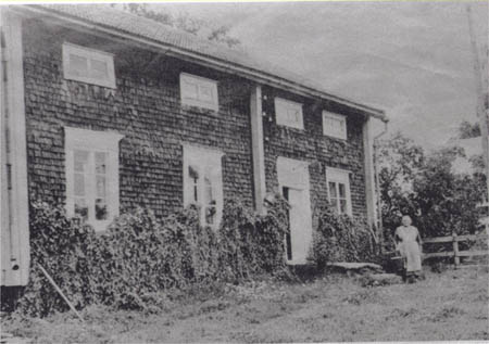 Aili Åman på Sandåsen. Aili och Johannes Åmans pärtbeklädda stuga på Sandåsen (Abbisis). Byggd ca 1783–4. Aili var född Uusitomtti i Mullos.