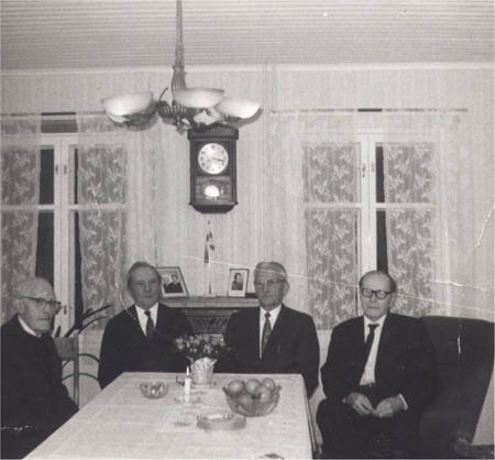 Fyra återvända emigranter hos John Rabb: Fr. v. Edvard Wasberg, John Rabb, Alfred Rabb, och August Björklund Maxmo.