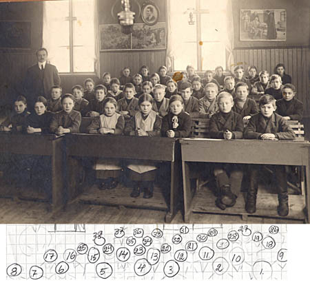 Vassor högre folkskola 1922. 1. Arvid Sandén, 2. Arvid Lundberg, 3. Berta Lundberg g. Österblad, 4. Alva Nykvist g. Herrgård, 5 Elna Heir g. Öman, 6. Sylvia Dahlberg g. Wasberg, 7. Agnes Udd g. Wasberg, 8. Ej Vassorbo, bodde i ”Strand-Maris” stuga, 9. Oskar Öman, 10. Ernst Hellman, 11. Robert Östman, 12. Alfred Vikman, 13. Arne Wik, 14. Rafael Åberg, 15. Georg Wallén, 16. Uno Wik, 17. Artur Wik (Nygols), 18. Edvin Wallén, 19. Evert Hinders, 20. Runar Dahlberg, 21. Maria Sandvik, 22. Astrid Udd, 23. Elna Enroth, 24 Signe Beijar, 25. Sigrid Heir, 26. Fanny Frantz g. Strand, 27. Ingrid Udd g. Rabb, 28. Evald Wik, 29. Ester Storbacka, 30. Albin Strandberg, 31. Elna Wik, 32. ?, 33. Signe Enroth g. Rönnberg, 34. Agda Norrgran g. Wik. 35. Ingrid Östman g. Åberg, 36. Helga Örnberg g. Hinders, 37. Sylvia Beijar, 38. Rut Örnberg.