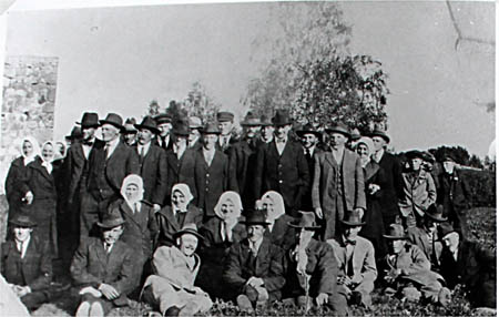 På utfärd, stående fr. v. ?, Helmi Rabb, ?, ?, ?, Alfred Wasberg, Arvid Strandberg ?, Hugo Vasberg, Alfred Forsén, Jakob Östman, Mickel Sandén, ?, Maria Sandén, ?, Emil Wasberg, 3 pojkar. Sittande fr. v. Oskar Örn, Anders Rabb, Maria Beijar, Ida Örn ?, ?, Verner Rabb, ?,?,?, Emil Rabbén och Anders Beijar, ?.