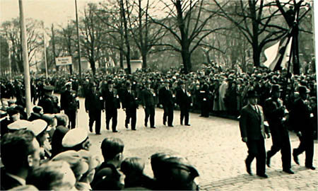 Parad i Vasa (tjugoårsminnet av frihetskriget). Fanbärare Edvard Wik och vid hans högra sida brodern Johannes Björkman