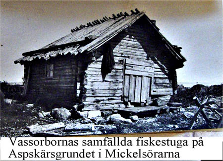 Jakob Örns fiskestuga på Aspskärsgrundet i Mickelsörarna. I SLS arkiv står att stugan var Vassorbornas samfällda fiskestuga. I Jakob Örns boupptecknig 1920 står att han hade Boda på Mickelsörarna. I Viktor Vikmans bouppteckning 1934 ägde han 1/4 av fiskarstuga på Mickelsörarna. Andra som kan ha haft del i den är motorbåtsägarna Alfred Forsman, Alfred Ivars och Johannes Södergård.