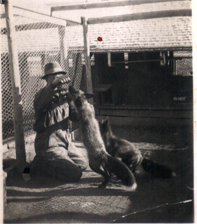 Johannes Södergård (f. 1886) med räv. Han drev rävfarm tillsammans med Edvin Forsén och Otto Granér.