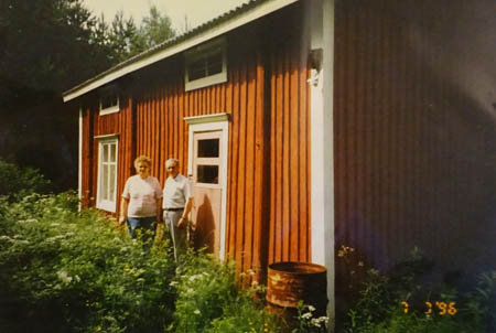 Stugan på mörkas torpställe Baköijen, Anselm Ahlskog hans mor Lovisa Ahlskog (1888–1974) och syster Elfrida Ahlskog (g. Åkerlund i Malax) från Sandören bodde där efter flytten från Sandören. Elfrida hade varit hushållerska åt Alfred Isaksson (skohandlaren) innan hon gifte sig i Malax. Isakssons bodde några somrar i stugan på Sandören sedan Lovisa flyttat bort. Herbert Rabb och Elli Rabb står framför stugan som Mickel Mickelsson Mörk (1862–1922) byggde. Mörkas torpstuga stod i närheten och beboddes av Johan Mickelsson Mörk (1865–1927) som flyttade till Koskö och blev arrendator på Jackula. Hans son bodde senare i torpstugan som revs och flyttades till Mattas viken. Se VBH III s.155.
