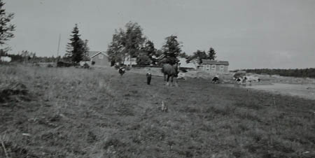I Södergårds ”Vatuhagan” i Kunisundet. Bergis el. Bleckaris (Evert Bergs gård från 1920-talet) i bakgrunden.