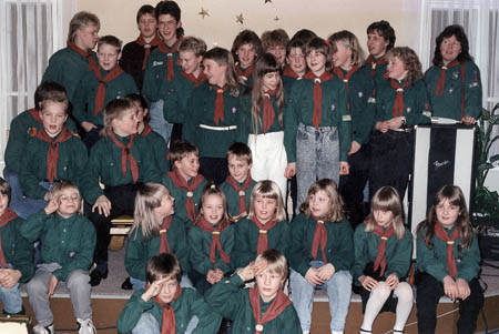 Översta raden: Janne Kempe, Kenth Nyvall, Tomas Nikus och Jan-Anders Rådman ( patrulledare), Catarina Nyvall, Ann-Charlotte Lax, Anna Nikus, Caroline Antell, Lena Småros ( patrulledare), Mikaela Hellman, Mia Åberg, Anne Vasberg, Benita Åberg (patrulledare), Minna Kempe och Tove Östman (patrulledare).