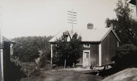 Isak Bergs stuga på Sundbacken. Kunibornas telefonledningar kom till telefoncentralen som fanns hos Bergs. Se VBH III s. 259