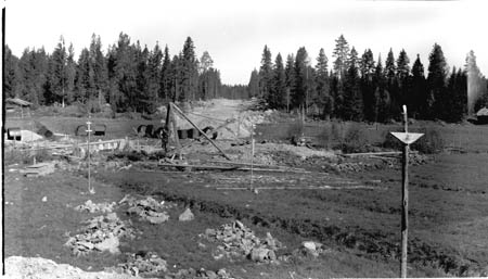 Vägbygge på 1950-talet. Troligen i Mikkon, Rölandet, där vägen går över Rölandsbäcken norrut.