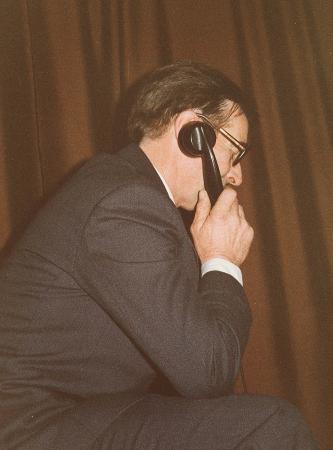 Kurt Östman i telefonsamtal i spexet Skåådin å skrattin 1982. Vassorspexet