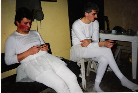 Stig Beijar och Klas Öman väntar på att komma upp på scen i Vassorspexet 1990, Haldin fasaadin
