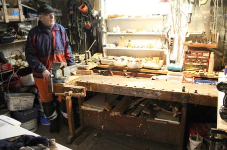 Paul Vasberg i snickarboden på sin hemgård på Brännbacken.