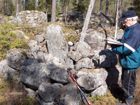 Torsten Rabb vid röse nr 12 på Vidbjärg där rån mellen Kärklax och Vassor gör ett knä.