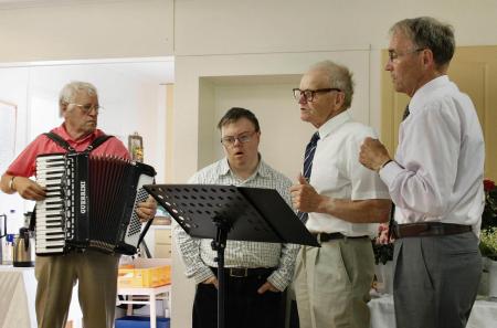 Ester Lundbergs 90-årsdag: Från vänster: Bengt Vestergård, Ulf Vestergård, Edvin Vestergård och Rudolf Vestergård.
