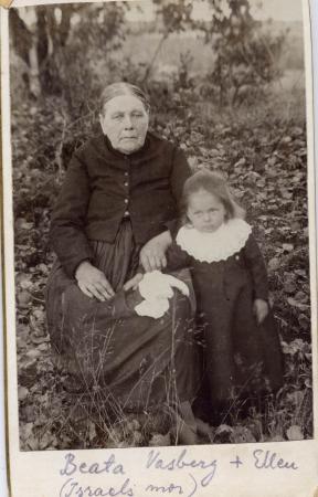 Beata Wasberg f. Rabb på Kilen torp 1825 (Israel Wasbergs mor) med sondottern Ellen Wasberg g. Rabb. (1901-1987)