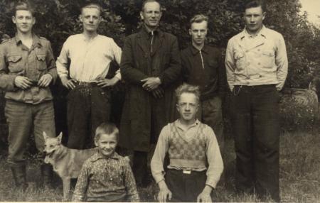Fr. v. Hilding Sundäng, Evald Willför, Vilho Koivisto, Karl Kuni, Sanfrid Örn. Sittande: Ruben Studd och Eino Koivisto.