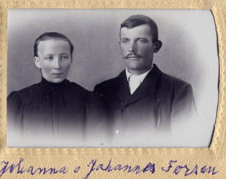 Johanna och Johannes Forsén f. 1875. Johannes var spelman och bonde på Boback. Johanna var hans första hustru.