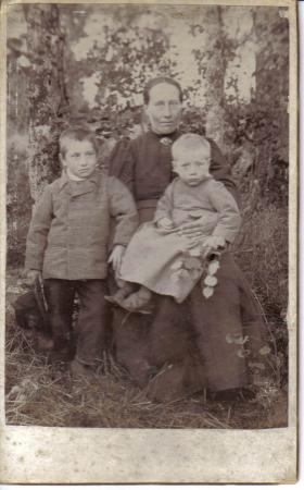 Maria Strandberg f. Ståhlberg f. 1869, med barnen, Johannes stående, och dottern Anna Maria i famnen. Maria var gift med "Strandbärgas Mittjil", Mickel Strandberg på Hagaris.