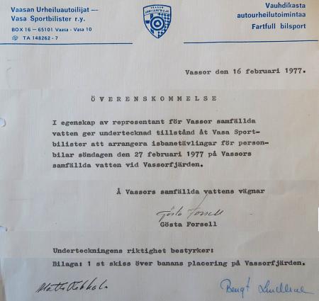 Vasa sportbilister höll under en tid regelbundet isbanetävlingar på Vassorfjärden. Tävlingen den 27 februari 1977 är möjligen den sista som ordnades.