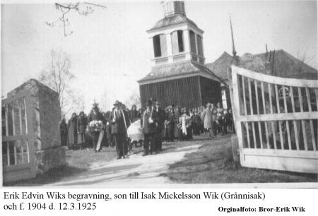 Edvin Wik (1904-1925) begravs i Kvevlax. Han var från Grånnbacken Norribyn och son till Isak Wik.