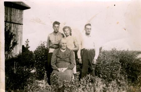 Fr.v. Birger Frantz, Greta Frantz g. Vestergård och Karl Storm. Sittande Johanna Fratz f. Östman (Bjynis). Bodde på Öirin.
