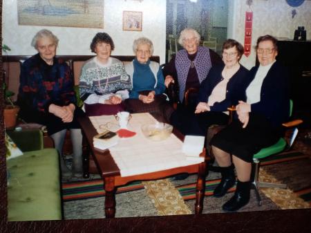 Kunidamer från vänster: Anni Rådman, Elna Forsman, Ellen Kuni, Inga Willför, Aurelia Rådman och Ethel Studd.