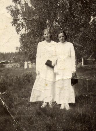 Konfirmander vid Kvevlax kyrka. Greta Frantz g. Vestergård och Alice Rabb (Dalas).