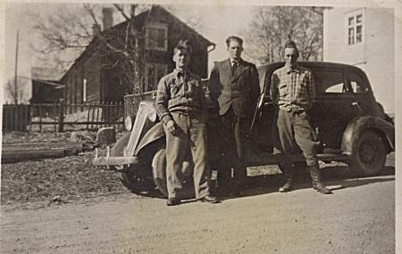 Erik Åman f. Willför med bil , Erik står i mitten.