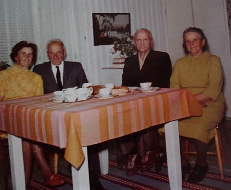 Margit Hinders med gästande Amerikaemigranten Johannes Flinkfelt (född 1893), Verner och Elsa Vestergård. Verner bodde och arbetade själv i USA 1913–20. Se mera om familjen Flinkfelt bild id 2027.00