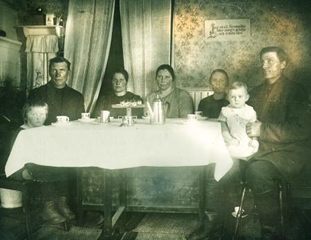 Johannes Kuni och Maria Kuni med dottern Aili f. 1923 g. Herberts, Sofia Örn, Elin Hedvik och Oskar Hedvik f. Örn 1896 med dottern Aurelia f. 1924 g. Rådman.