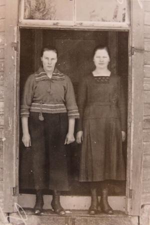 Andelshandeln öppnade i huset Maxmo Handelslag köpt av Isak Sandvik. Bilden är tagen innan huset flyttats ned till byvägen. I dörröppning står Ida Westermark g. Wik och Ellen Berg. Idas son Bertel har fotot som är taget 1923 då Ida arbetade i butiken.