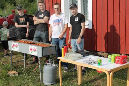 Vasa Veteranbilssällskap besökte marthagården i Vassor 28.6.23. Marthorna tog emot med kaffe och bröd och ungdomsföreningen stod för läsk och korvgrillningen. Från Vänster Pontus Söder, Jens Vasberg, Erik Sundström och Hannes Rabb. I bakgrunden syns lite av Erik Sundströms veterantraktor.