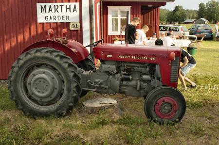 Vasa Veteranbilssällskap besökte marthagården i Vassor 28.6.23. Marthorna tog emot med kaffe och bröd och ungdomsföreningen stod för läsk och korvgrillningen. Erik Sundströms veterantraktor var parkerad vid gaveln. Erik deltog i korvförsäljningne.