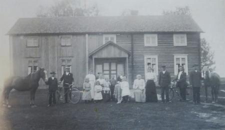 Personer från vänster: Arvid Frantz (senare Fors i Maxmo), Albert Frantz (till Amerika), Anna Frantz (Storbacka), Ester Frantz, Ellen Frantz (Andersson i Amerika), Josefina Franz (Karls hustru) med dottern Fanny Frantz (Strand till Amerika) i knäet, Teodor Frantz (senare Forsell), Johannes (till Amerika), Sigrid Häggström, Anna-Maria Fors, Tilda Häggström (Sigrids mor och Josefinas syster, hennes man for till Amerika och dog där), Anders Fors (f.d. arrendator på Tottesund), Alfred Frantz (Karls brorson, skomakare), Karl Frantz (arrendator på Smeds boställe).