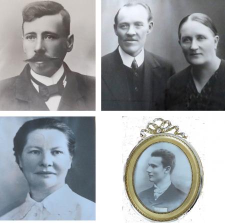 Nedre raden; Ellen Berg f. 1903 d. 1973 lärare i Vassor lägre folkskola 1922 – 1965 och Anders Johan Nygren f. 1869 d. 1902, författare.